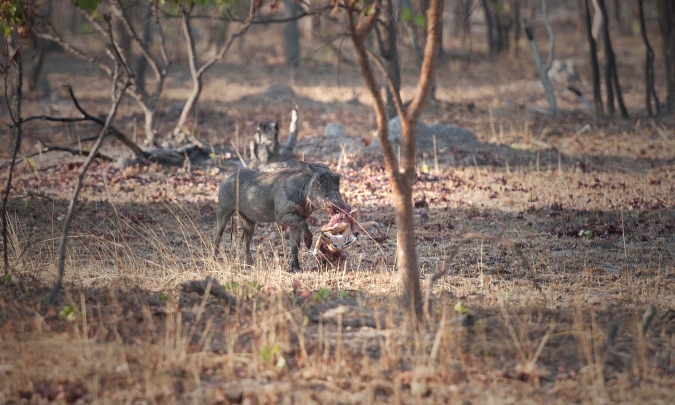 Tyrone explained that it was not wholly uncommon to find warthog (and a number of other unexpected species) feeding on carcasses or carrion, especially at this time of year (the end of the dry season, when wildlife is a little more stressed and certain minerals and salts may not be so ready available in the bush). But to witness a warthog actively catch, kill and consume a baby impala was something that was very hard to explain. One wonders how often this may actually happen but we simply do not see it. We did feel sorry for the impala mother however, as who needs enemies when you’ve got friends like the warthog!