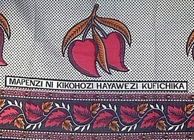 One distinguishing feature of kanga's is that they always bear a saying in Kiswahili.